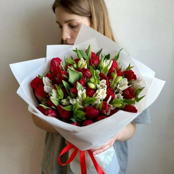 Ծաղկեփունջ վարդերով և ալստրոմերիայով