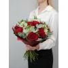 Bouquet of 15 red roses and 14 white chrysanthemums